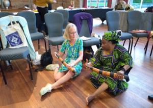 Kvällarna ägnades åt kultur, då vi fick presentera uttryck, sånger, danser från våra respektive länder. Vi nordbor uppmanades att illustrera bastuliv -förutom att berätta andra karaktäristika!! En kväll ägnades åt att fördjupa oss i Nigerias historia och liv. Världsböndagens program nästa år 2026 kommer från Nigeria. En grupp nigerianska kvinnor som bor i Edinburgh berättade, dansade ock sjöng. Den som ville kunde lära sig att använda en kalebass som instrument genom att slå mot ett ben sittandes. Vår nya ordförande Gunilla försökte sig på den konsten. Skottland var förstås representerad en av kvällarna, då vi bl a fick dansa skotska danser, Scottish Ceilidh med Blackford Fiddle Group, en glad och uppsluppen kväll!!
